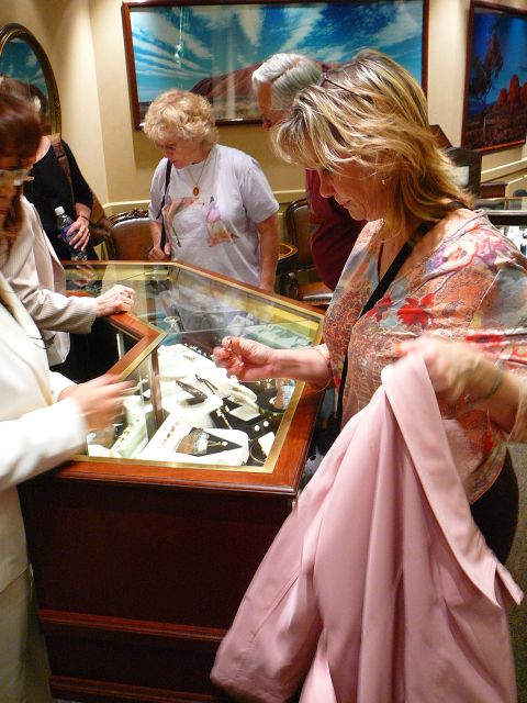 Mary's looking at jewelry neither of us can afford. The staff admitted to us that tourists don't buy things here; all their big sales are to the people who live in Las Vegas.