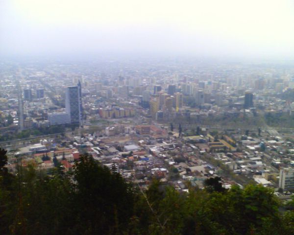 San Cristobal is a hill right in the middle of Santiago. Up on top, there's a huge statue of the Virgin Mary. This is a view looking down on the city from the top of the hill. It was a day with low clouds and fog duking it out to see who would mess up my pictures more.